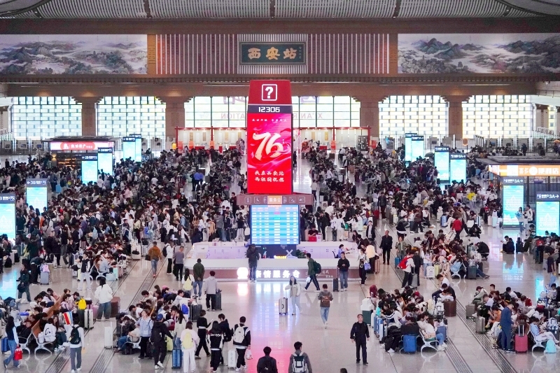 10月2日,国庆中秋假期第二天,中国铁路西安局集团有限公司(以下简称“西安铁路局”)预计发送旅客68.5万人次,西安铁路局计划加开列车162列,对54列热门线路动车组重联运行,全力满足旅客出行需求。