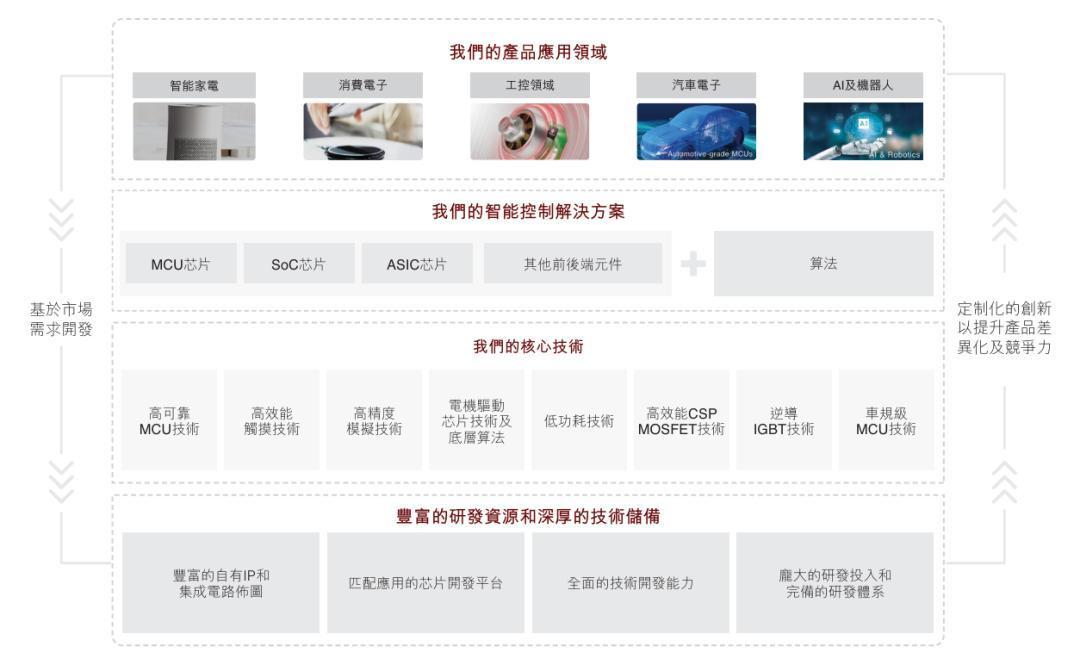 中微半导体围绕智能控制器所需芯片及底层算法进行技术布局,不断拓展自主设计能力,已完成以MCU为核心的芯片开发平台,实现了芯片的结构化和模块化开发,具备8位和32位MCU、高精度模拟、功率驱动、无线射频和底层核心算法的设计能力,可针对不同细分领域做出快速响应。